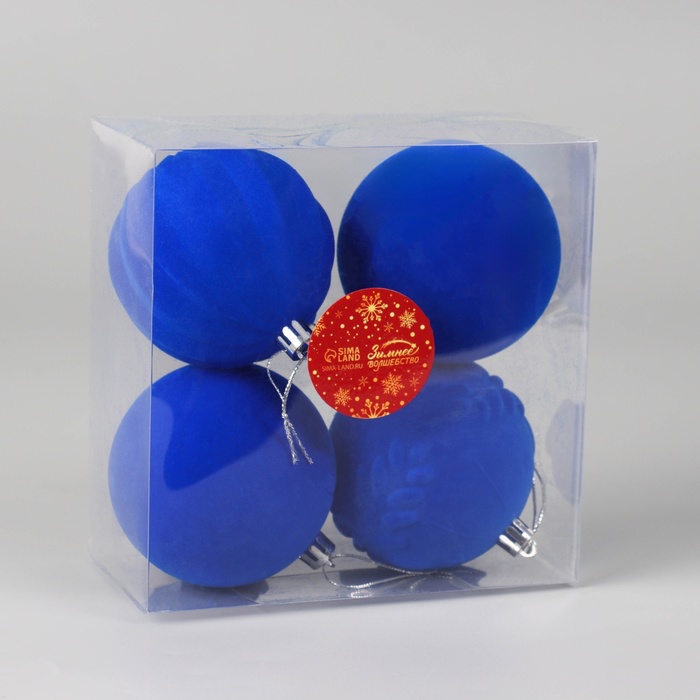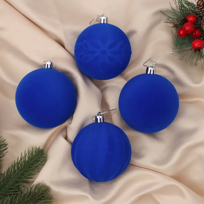 Ёлочные игрушки «Бархатный зной», шары новогодние, d=8 см, 4 шт., синий — Характеристики