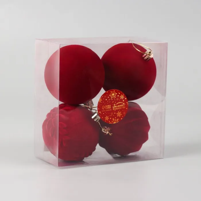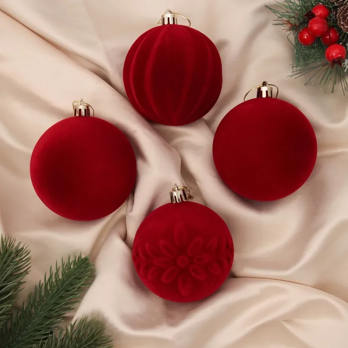 Эти шары подходят тем, кто ценит минимализм в оформлении, но не готов отказываться от новогоднего настроения. Красный цвет задаёт тон всему декору, а крупный размер делает каждую игрушку заметной на ёлке. Такие украшения легко комбинировать с белыми, золотыми или деревянными элементами, создавая уютную зимнюю атмосферу. Пластик обеспечивает долговечность — они останутся частью вашего праздника на многие годы.