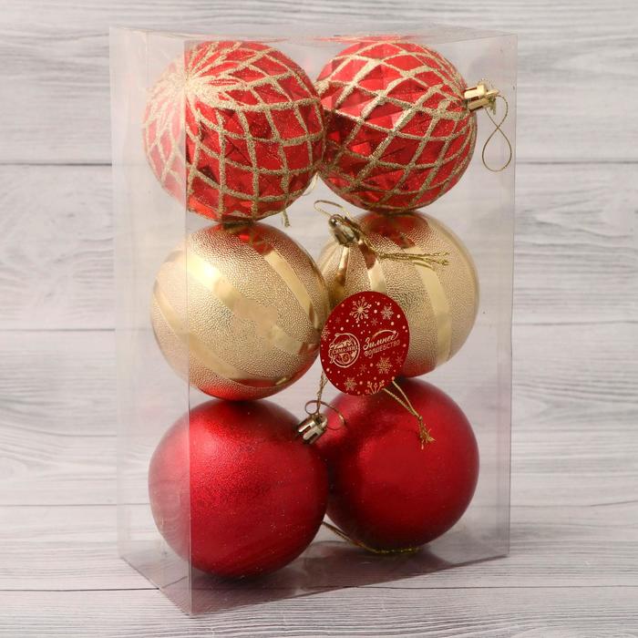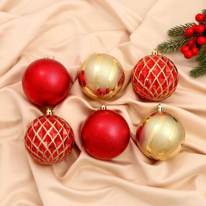 Ёлочные игрушки «Беата сеточка», шары новогодние, d=8 см, набор 6 шт., золотисто-красный — Характеристики