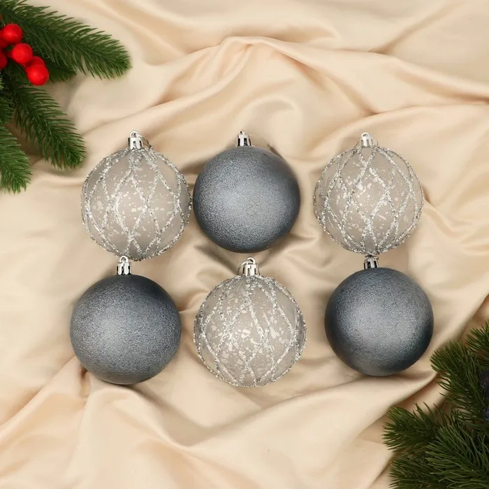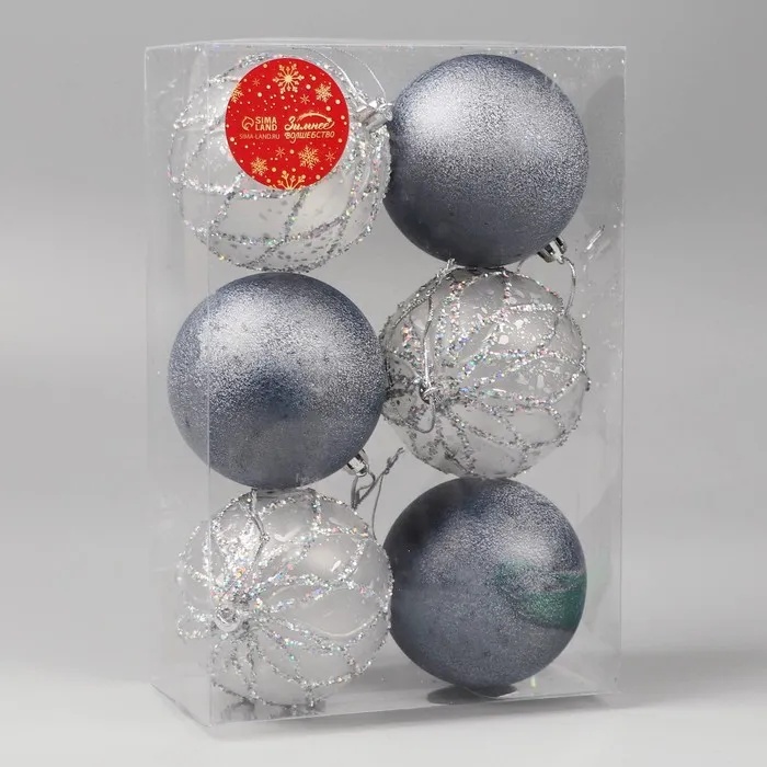 Эти шары превращают ёлку в пространство холодного блеска и тёплых воспоминаний. Сине-серебристые оттенки, чёткий рисунок и крупные формы делают их центральным элементом декора. Используйте игрушки как основу или дополнение — они одинаково хорошо работают в разных стилистических решениях и идеях оформления ёлки.