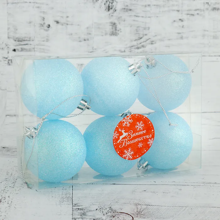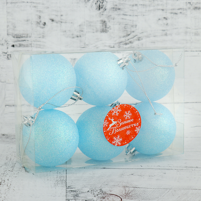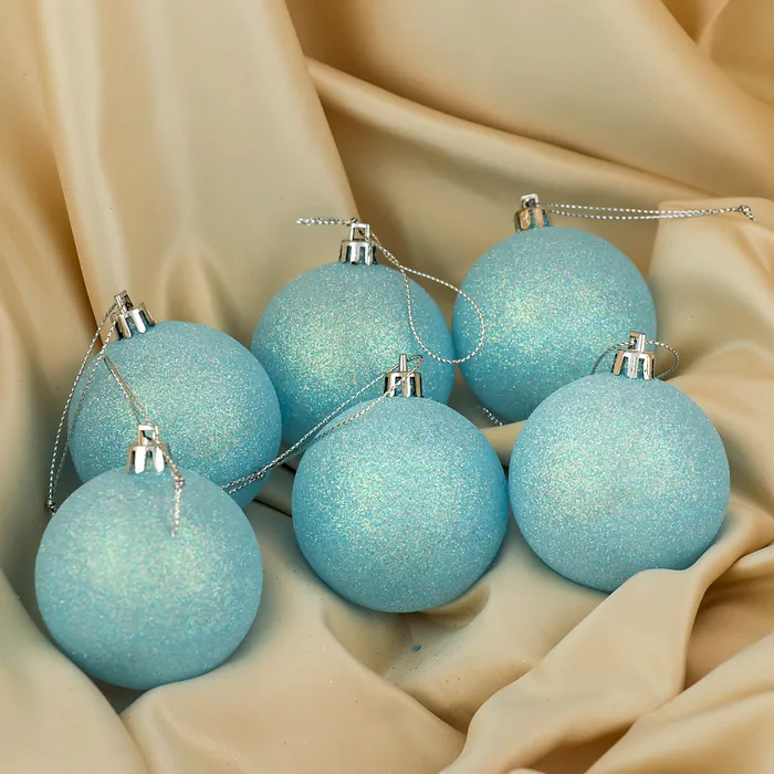 Ёлочные игрушки «Блеск», шары новогодние, набор 6 шт., d=6 см, голубой — Характеристики