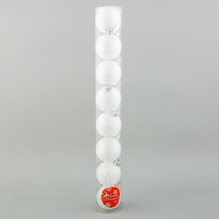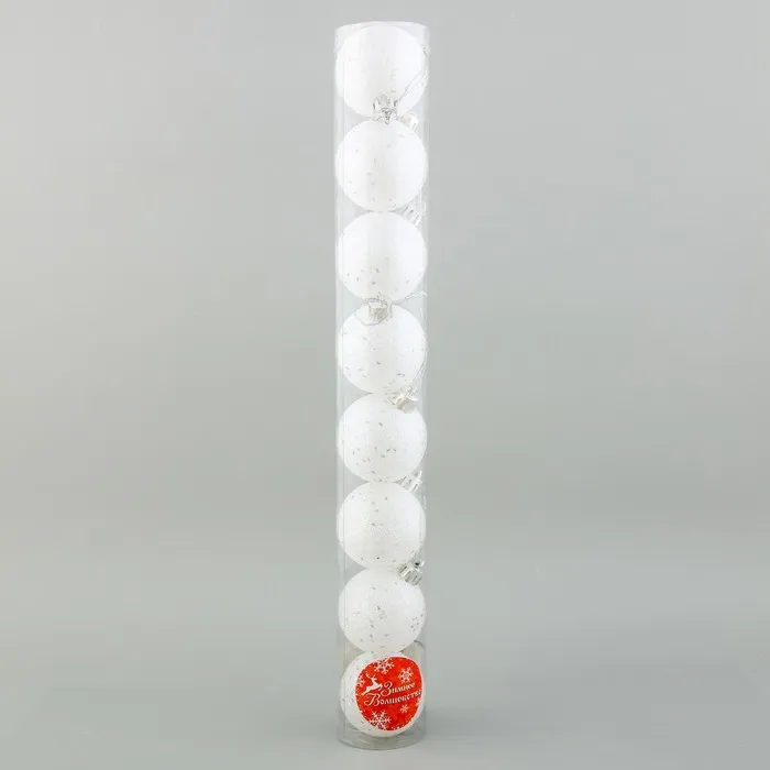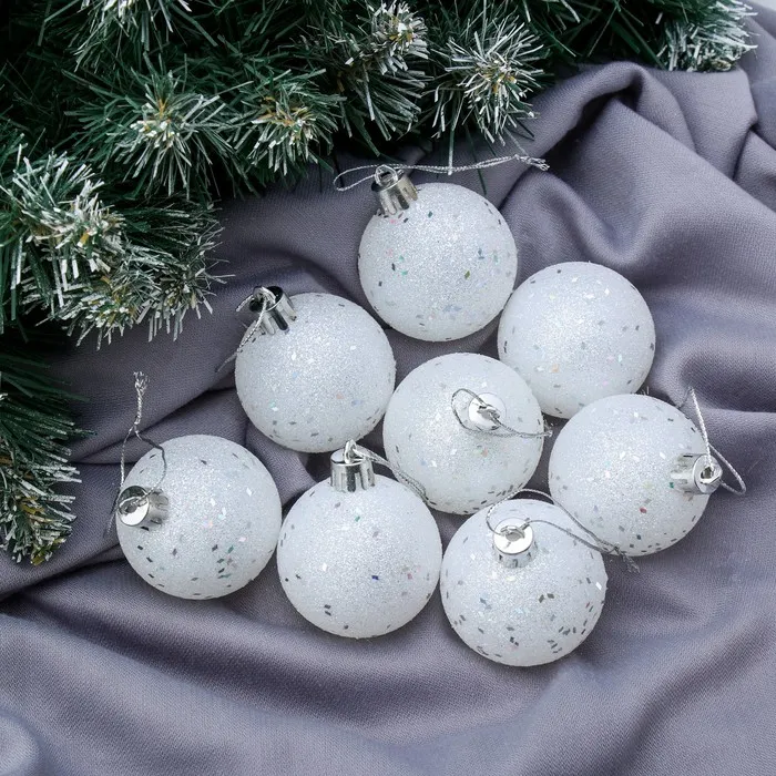 Ёлочные игрушки «Блеск», шары новогодние, набор 8 шт., d=5 см, белый очаровательно смотрятся с новогодними игрушками в виде бантов и цветов. Создайте особенный новогодний интерьер в белом цвете.