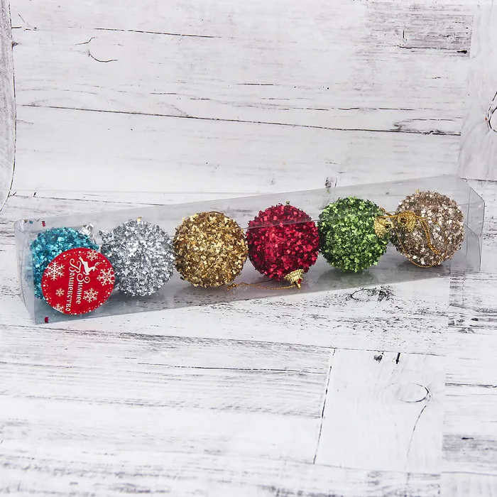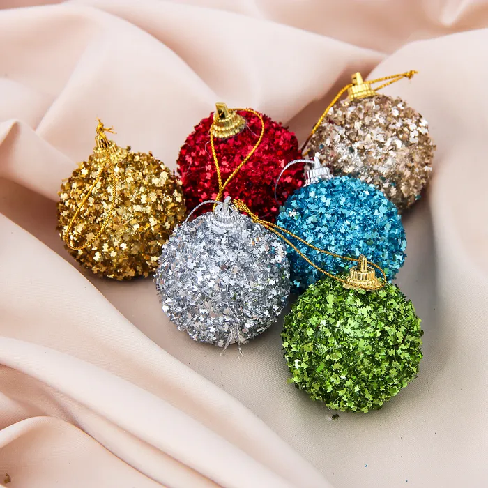 Ёлочные игрушки «Блёстки», шары новогодние, набор 6 шт., d=4.5 см, МИКС — Характеристики