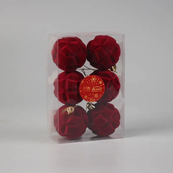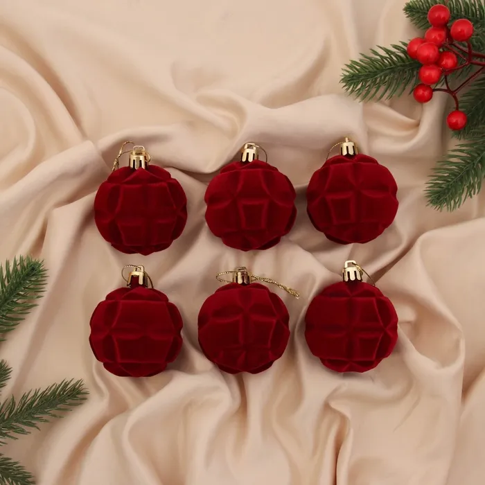 Новогодние шары насыщенного красного цвета — это базовый, но яркий элемент праздничного декора. Шесть пластиковых игрушек диаметром 6 см подходят для оформления ёлки в стиле новогоднего барокко или фьюжн. Такие украшения станут универсальной основой для создания уютной и торжественной атмосферы зимнего праздника.