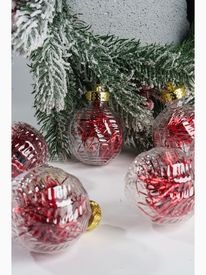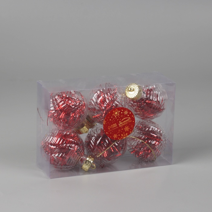 Ёлочные игрушки «Бринцзе», шары новогодние, d=6 см, набор 6 шт., красный/прозрачный — Характеристики