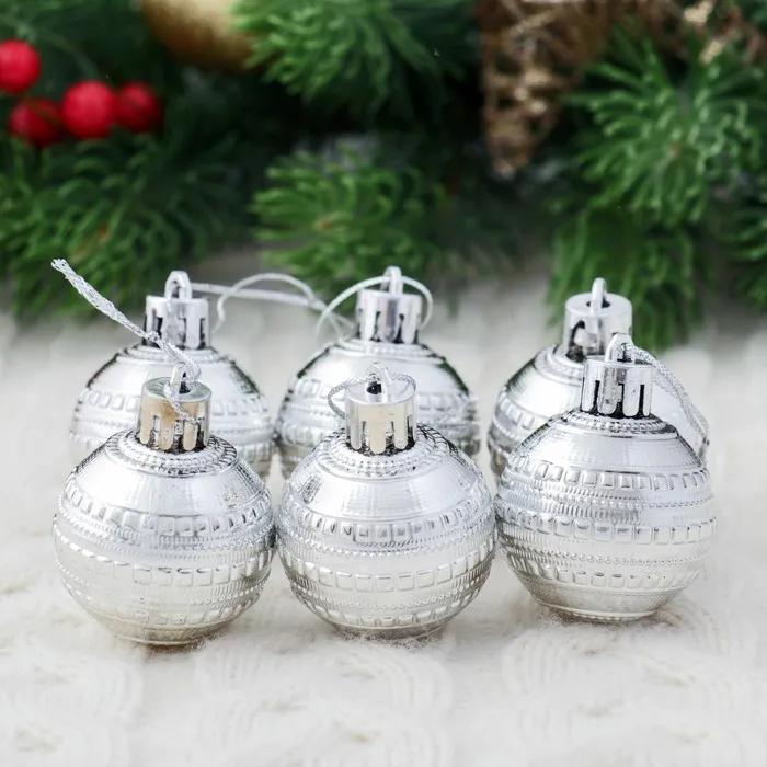 Ёлочные игрушки «Бусинка», шары новогодние, d=4 см, набор 6 шт., серебро — Характеристики