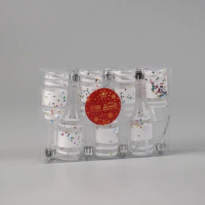 Ёлочные игрушки "Бутылочка" (набор 6 шт) 11х3 см, прозрачно-белый — Характеристики
