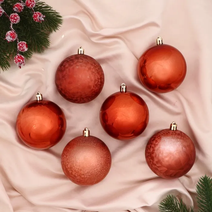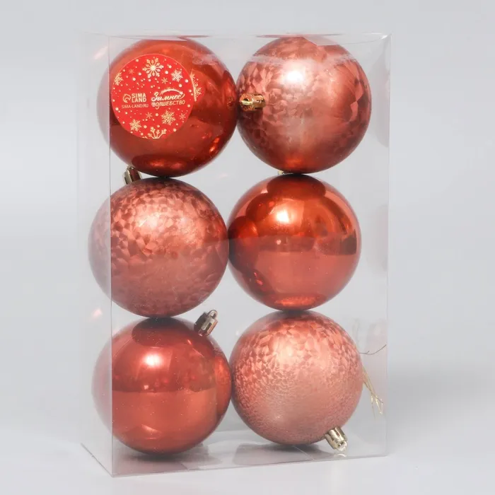 - В комплекте 6 шаров с классической формой и ровным цветовым решением.