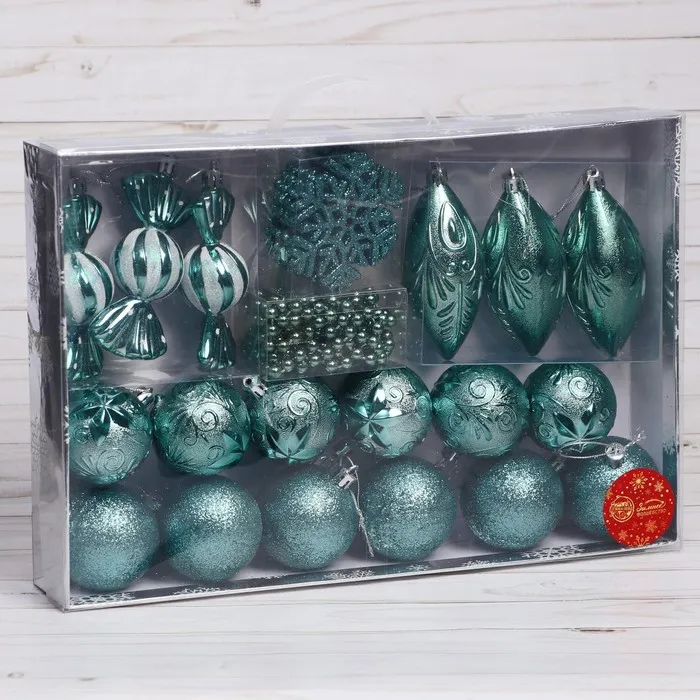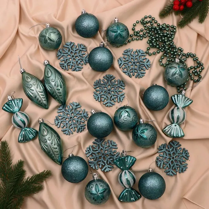 Ёлочные игрушки «Чудесный день», шары новогодние, набор 25 шт., зелёный — Характеристики