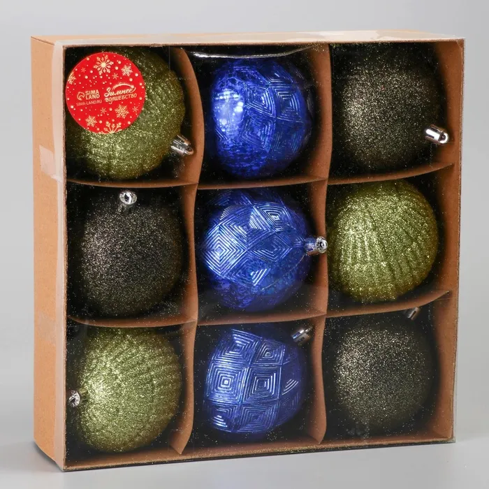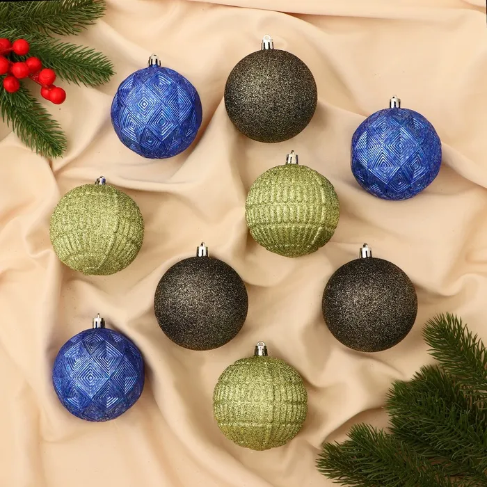 Ёлочные игрушки «Чудо - узоры», шары новогодние, d=7.5 см, набор 9 шт., зелёный/синий — Характеристики