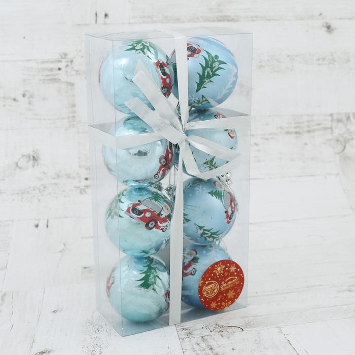 Ёлочные игрушки «Дед Мороз на автомобиле», шары новогодние, набор 8 шт., d=6 см, голубой — Характеристики