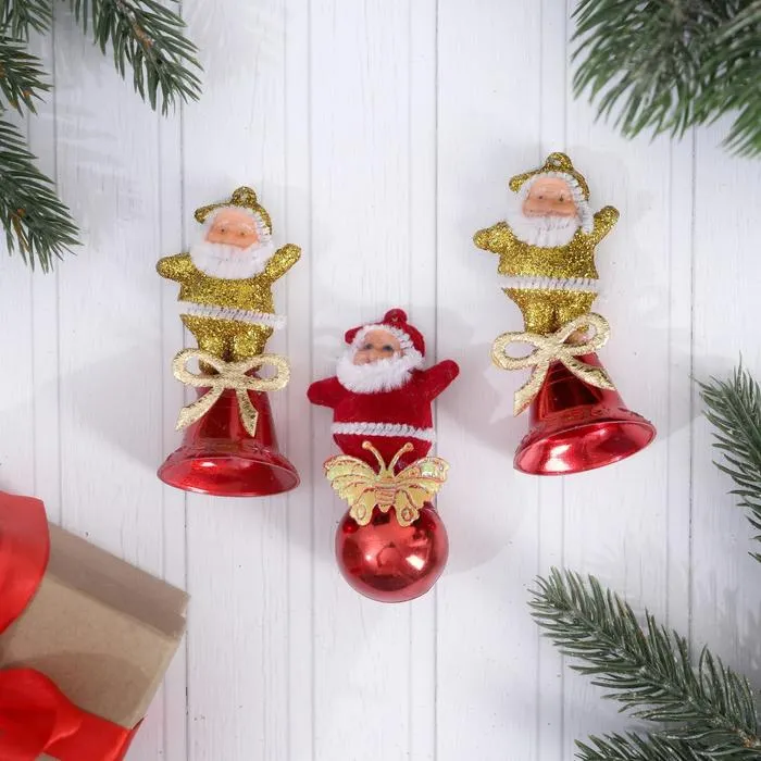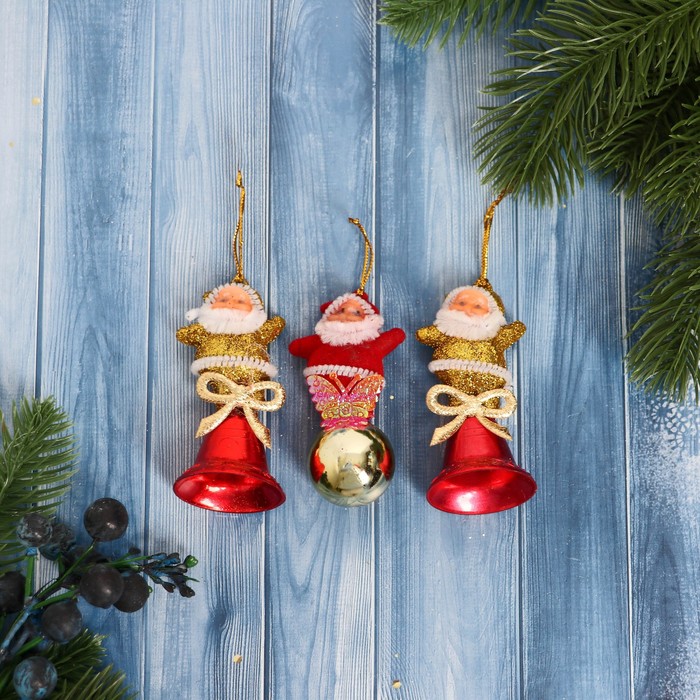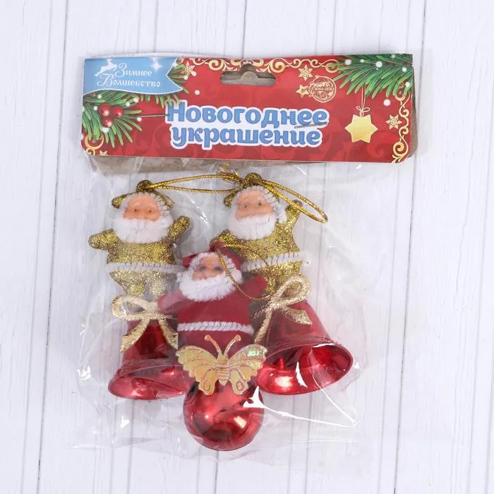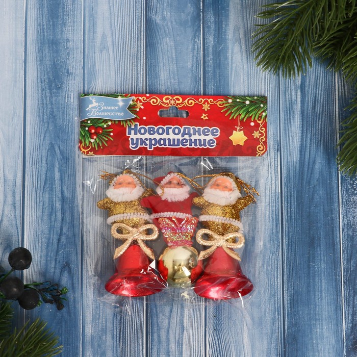 Ёлочные игрушки "Дедушка Мороз" (набор 3 шт) 3х7 см, МИКС красно-золотой — Характеристики