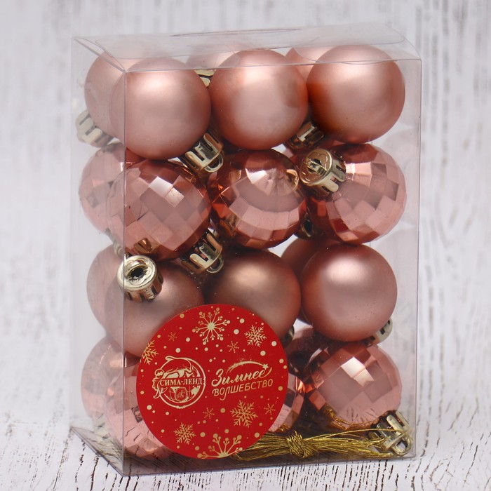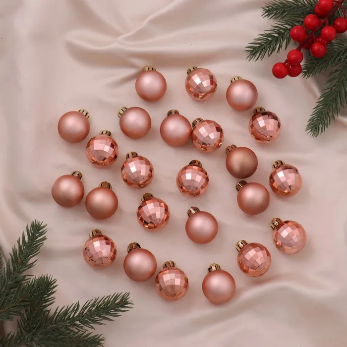 Ёлочные игрушки «Диско ассорти», шары новогодние, d=3 см, набор 24 шт., розовое золото — Характеристики