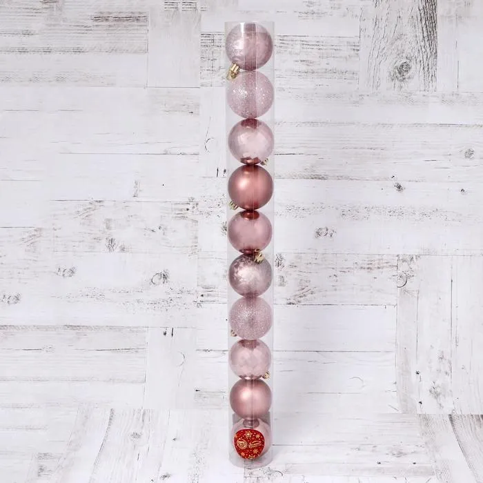 Новогодние шары нежного розового цвета — это яркий и запоминающийся акцент для праздничной ёлки в скандинавском стиле. Набор из 10 пластиковых игрушек диаметром 6 см станет универсальным решением для создания уютной и светлой атмосферы зимнего торжества. Однотонный дизайн делает их идеальной базой для любого новогоднего оформления.