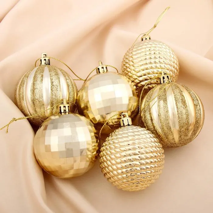 Пластиковые новогодние шары золотистого цвета — это стильное и лаконичное решение для праздничного декора. Игрушки диаметром 6 см выполнены в классической форме и подходят под стили ар-деко, барокко и строгой классики. Набор из 6 элементов станет ярким, но сдержанным акцентом на ёлке или дополнит уже существующий новогодний образ.