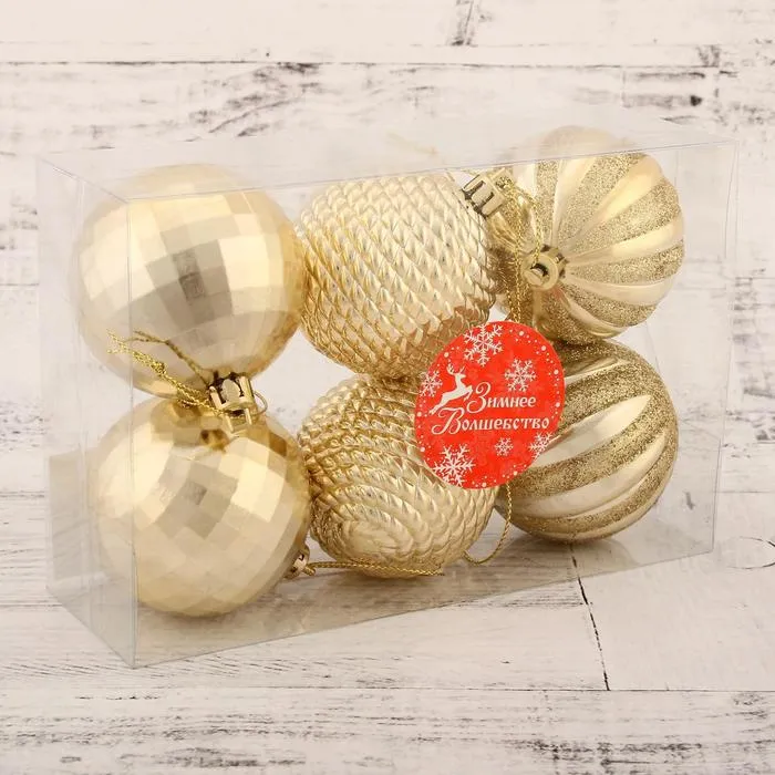 Ёлочные игрушки «Диско МИКС», шары новогодние, пластик, набор d=6 см, 6 шт., золотистый — Характеристики