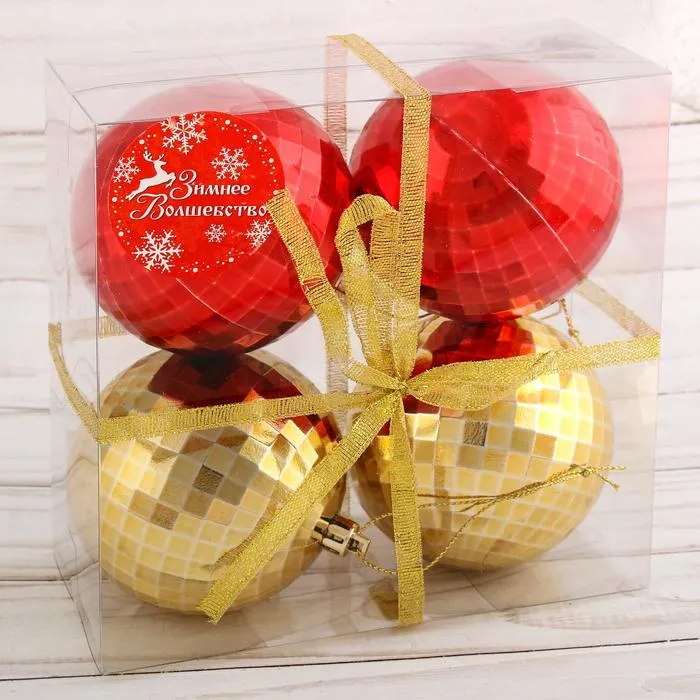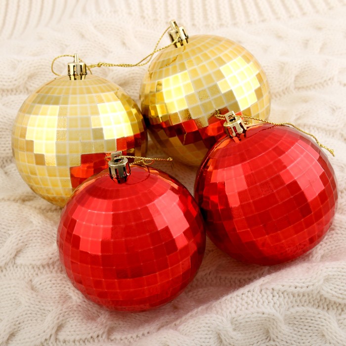 Ёлочные игрушки «Диско», шары новогодние, d=8 см, набор 4 шт., красный/золотистый — Характеристики