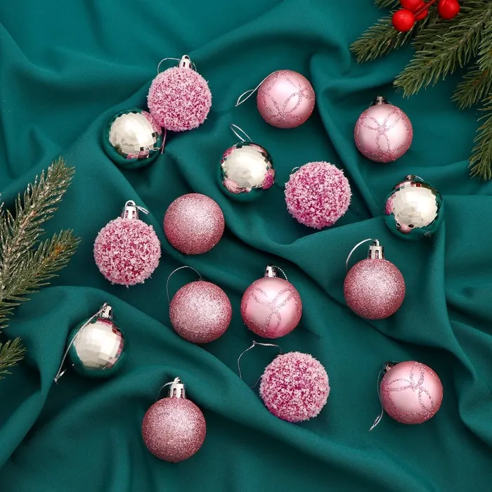 Эти шары создают образ Нового года, наполненный светом, движением и добрым настроением. Розовые и серебристые оттенки работают вместе, чтобы сделать ёлку частью вашей зимней истории. Используйте их как основу или как дополнение к уже имеющемуся декору — они одинаково хорошо подходят для разных интерьеров и решений праздничного дизайна.