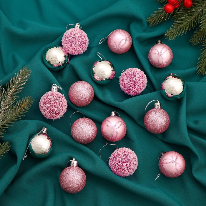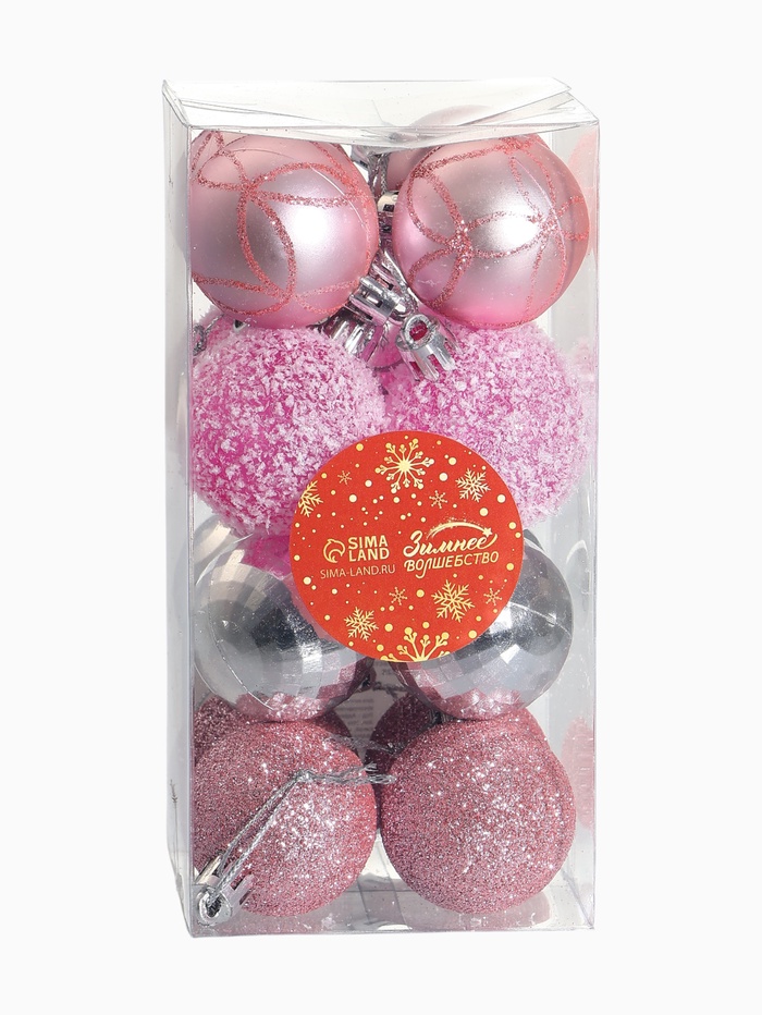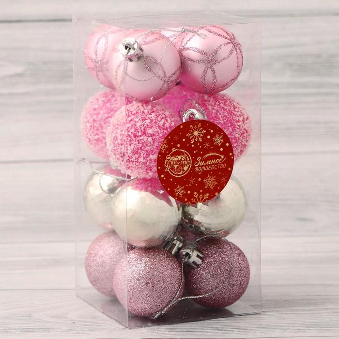 Ёлочные игрушки «Диско», шары новогодние, набор 16 шт., d=4 см, розовый — Характеристики
