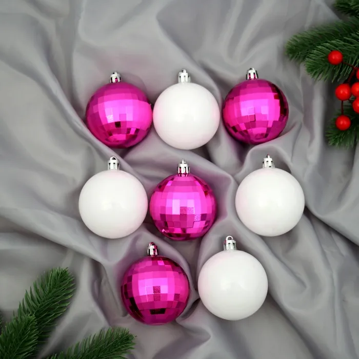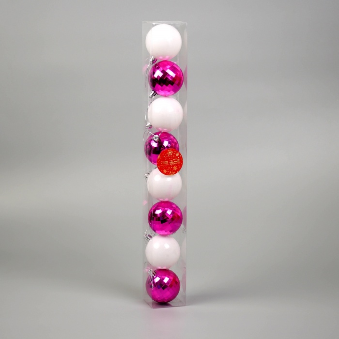 Ёлочные игрушки «Диско», шары новогодние, набор 8 шт., d=6 см, розово - белый — Характеристики