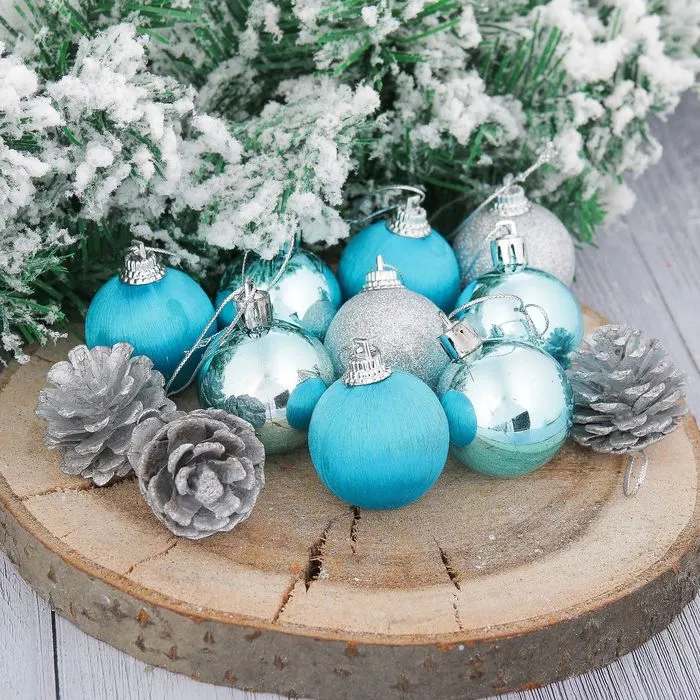 Новогодние игрушки «Домик» — это лаконичный и стильный набор для украшения ёлки в серебристо-голубой гамме. В комплекте 12 элементов: 9 шаров и 3 шишки диаметром 3 см, выполненных из пластика и дерева с однотонной поверхностью. Украшения в стиле шебби-шик и фьюжн подходят как для традиционного, так и для современного оформления праздника.