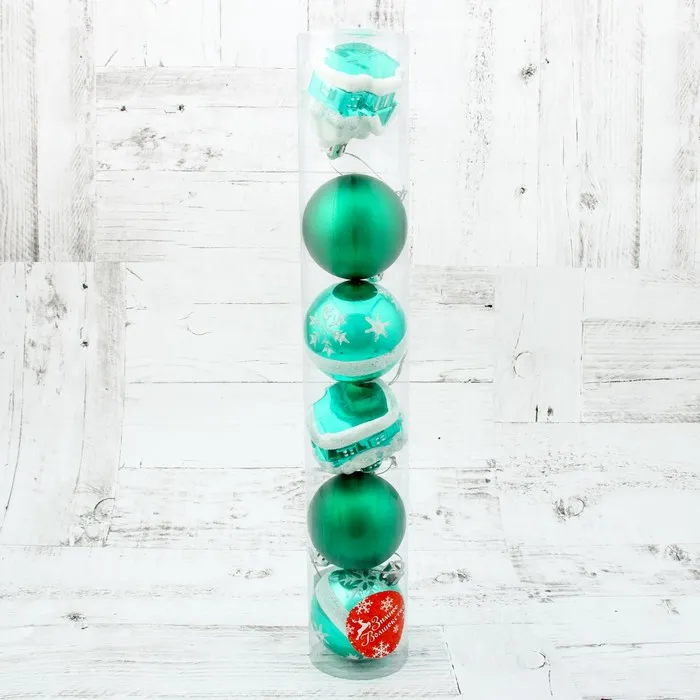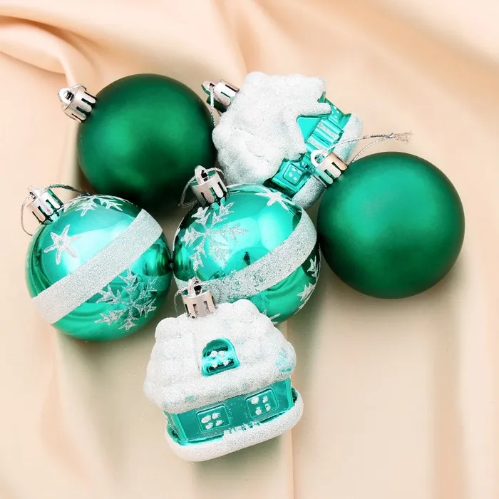 Ёлочные игрушки «Домик», шары новогодние, набор 6 шт. (4 шара, 2 домика), 6 см, зелёный — Характеристики