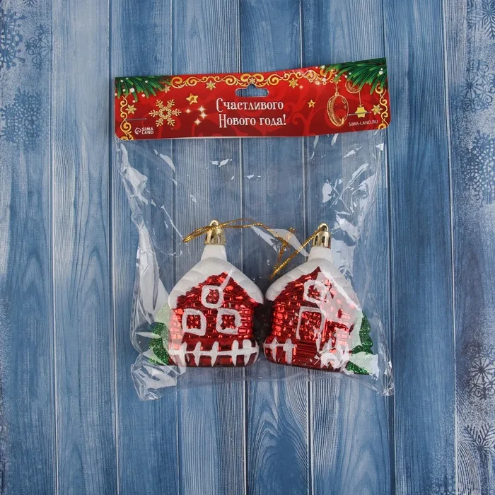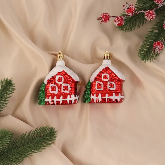 Ёлочные игрушки "Домик в снегу" (набор 2 шт) 7х6 см, красный — Характеристики