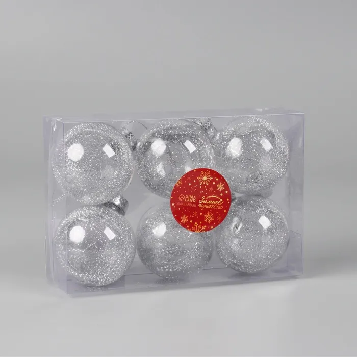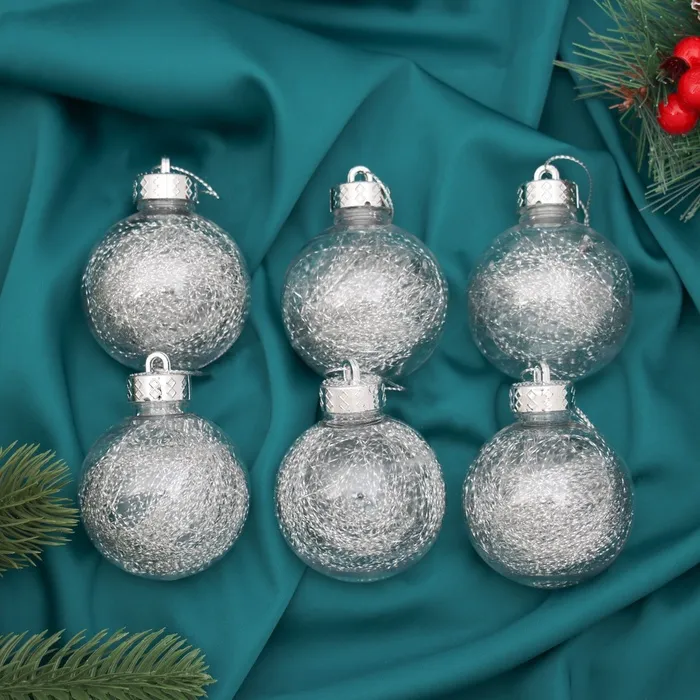 Ёлочные игрушки «Дончо», шары новогодние, d=6 см, набор 6 шт., серебристый/прозрачный — Характеристики