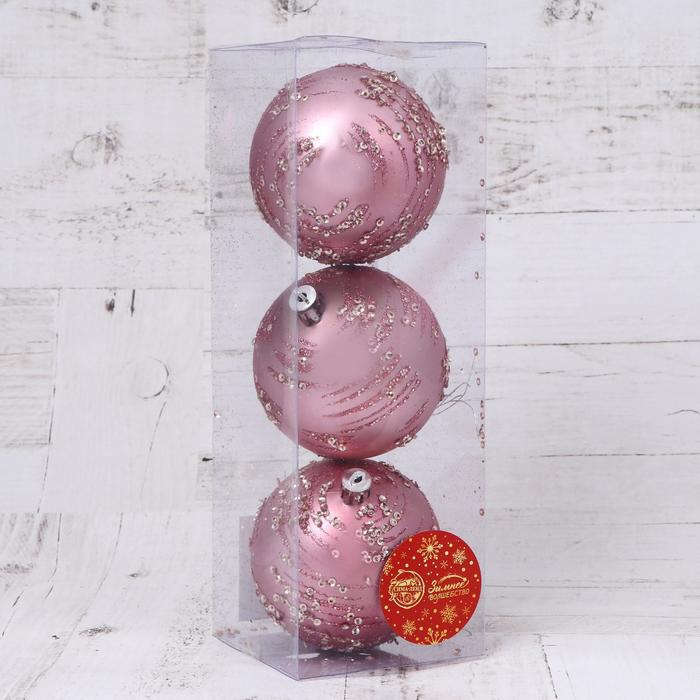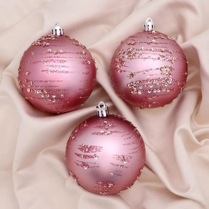 Эти шары подходят тем, кто хочет добавить ёлке не только цвет, но и текстуру. Розовый фон с декоративными вставками создаёт эффект «пайеток», напоминающий сверкающий снег под лунным светом. Такие игрушки легко использовать как центральные акценты или как часть праздничной композиции, чтобы подчеркнуть настроение зимнего торжества.