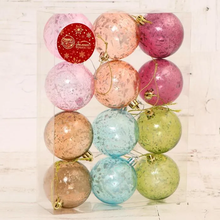 Ёлочные игрушки «Дженна прозрачный», шары новогодние, d=6 см, набор 12 шт., МИКС