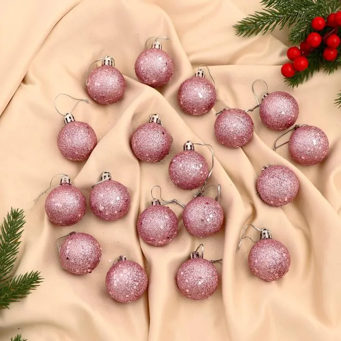 Эти шары подходят тем, кто любит наполнять ёлку множеством мелких, но значимых деталей. Розовый оттенок добавляет интерьеру света и тепла, а компактный размер позволяет равномерно разместить украшения по всей ёлке. Такие игрушки легко комбинировать между собой и с другими пастельными тонами, чтобы создать образ новогодней сказки своими руками.