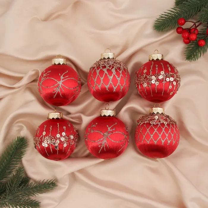 Новогодние шары с рисунком — это яркий и стильный элемент для украшения ёлки в преддверии праздника. Шесть пластиковых игрушек диаметром 8 см станут универсальным решением для создания новогоднего настроения в стиле барокко или скандинавского минимализма. Насыщенный красный цвет и декоративные узоры добавляют образу торжественности и индивидуальности.
