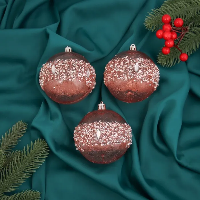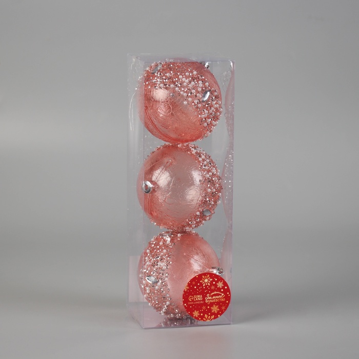 Ёлочные игрушки «Эйдонс», шары новогодний, d=8 см, набор 3 шт., розовый — Характеристики