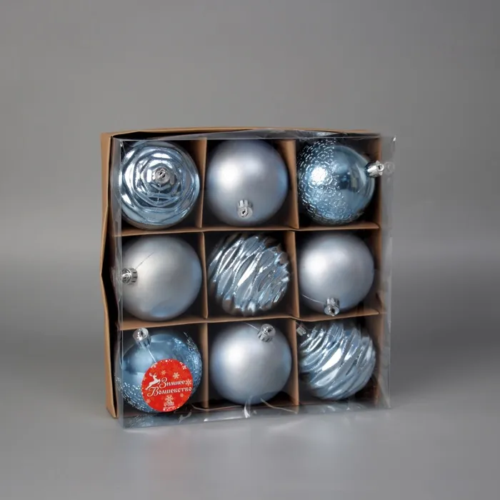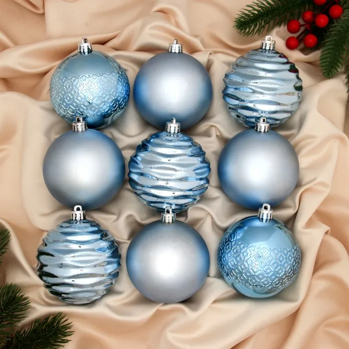 Ёлочные игрушки «Эйри», шары новогодние, d=8 см, набор 9 шт., голубой — Характеристики