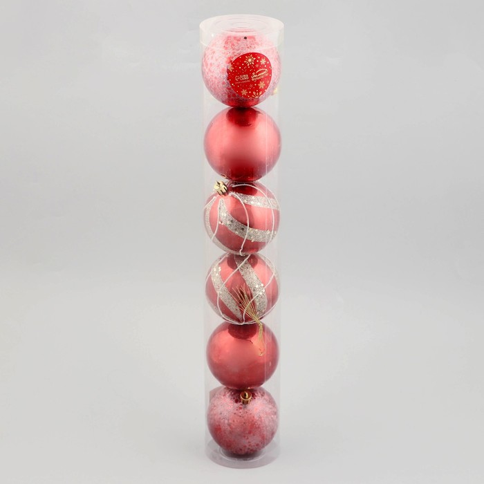 Ёлочные игрушки «Эйвери», шары новогодние, d=8 см, набор 6 шт., полосы, серебристо-красный — Характеристики