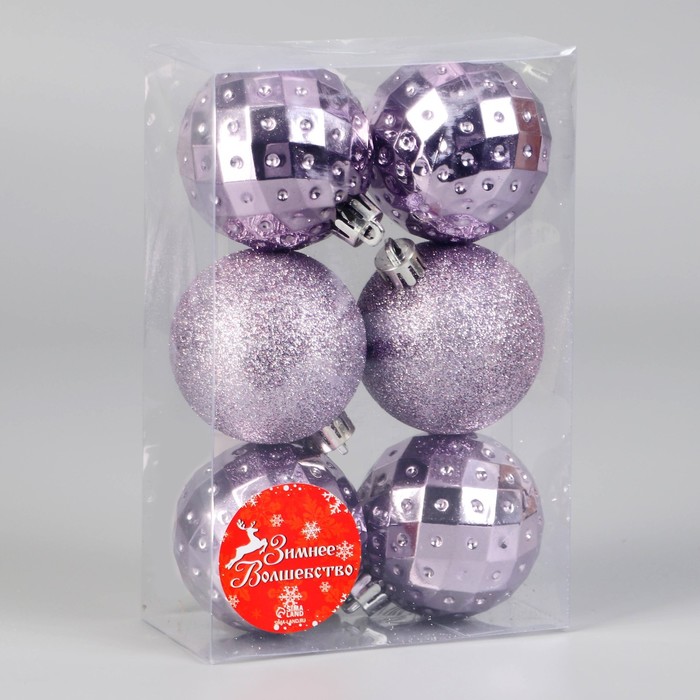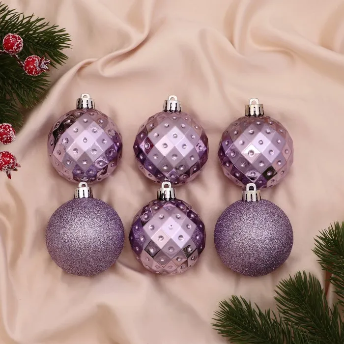 Ёлочные игрушки «Элитная геометрия», шары новогодние, d=6 см, набор 6 шт., сиреневый — Характеристики