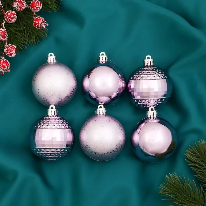 Ёлочные игрушки «Элитное диско», шары новогодние, d=6 см, набор 6 шт., сиреневый — Характеристики