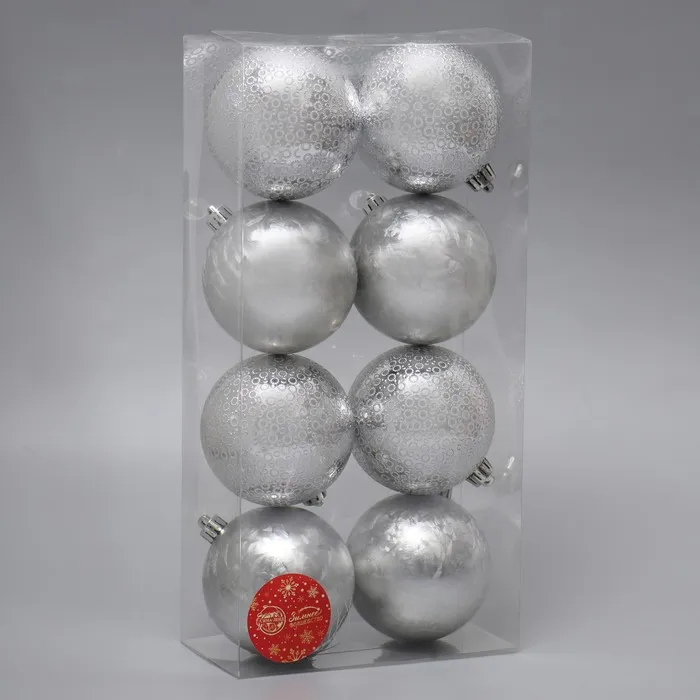 Ёлочные игрушки «Элла», шары новогодние, d=8 см, набор 8 шт., серебро — Характеристики