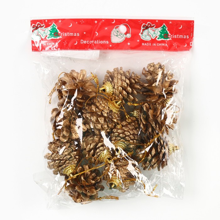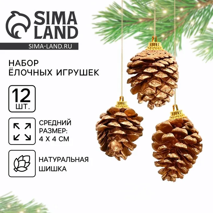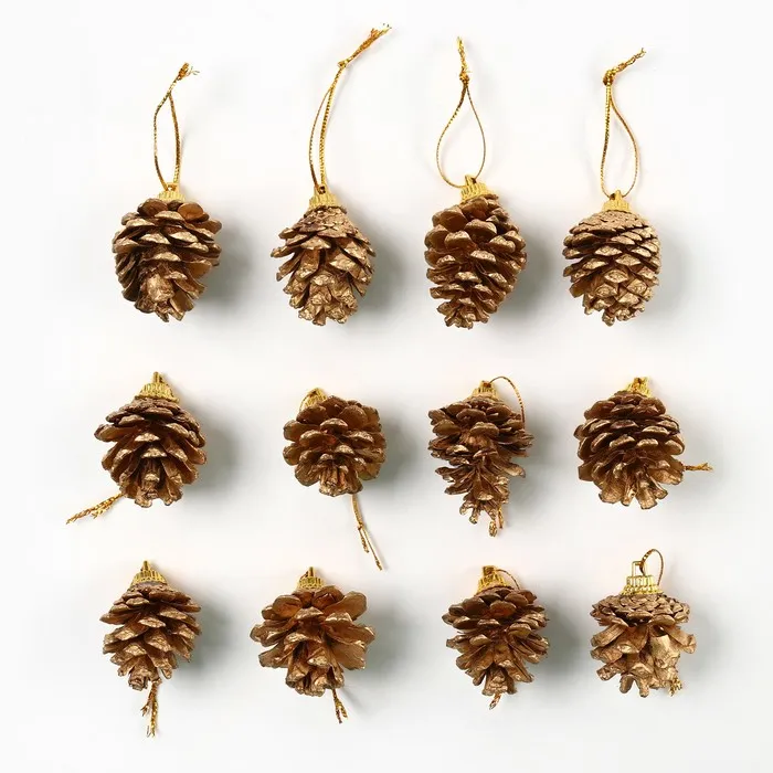 Ёлочные игрушки «Еловые шишки», золотые
