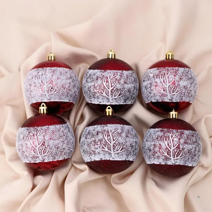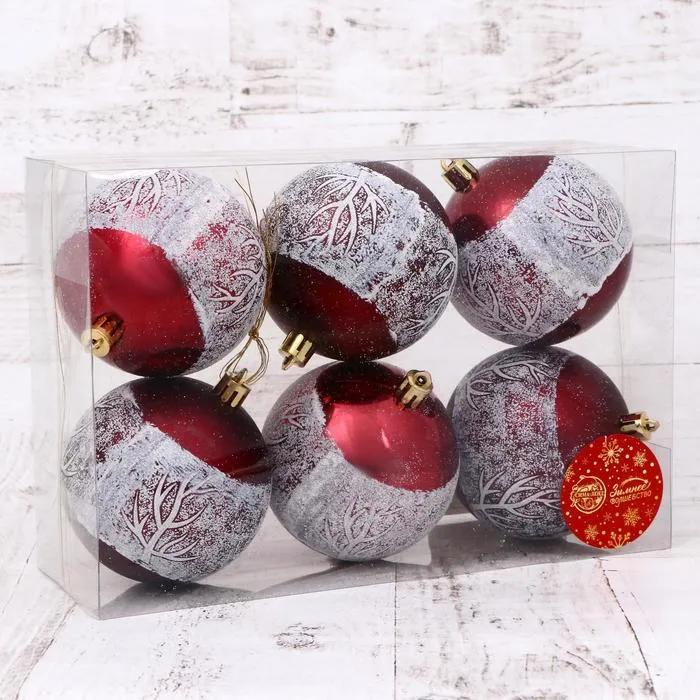 Ёлочные игрушки «Этель», снежинки, набор 6 шт., d=8 см, красно - белый — Характеристики