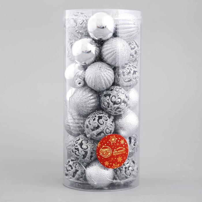 Ёлочные игрушки «Феерия», пластиковые, набор 35 шт., d=4 см, серебристый — Характеристики