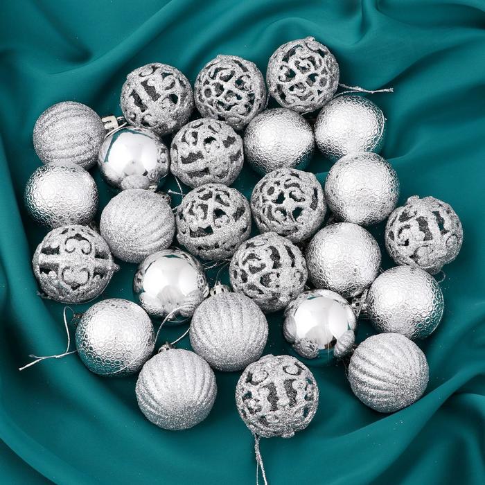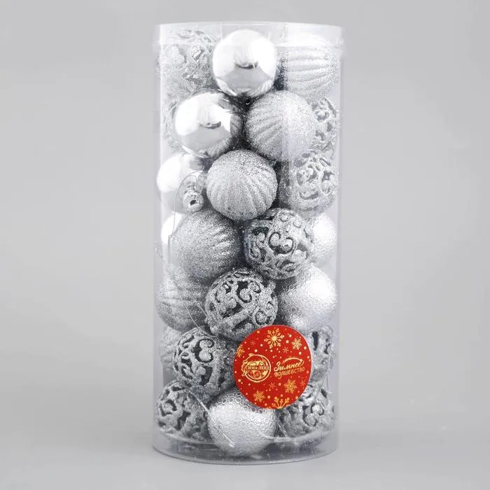 Ёлочные игрушки «Феерия», пластиковые, набор 35 шт., d=4 см, серебристый