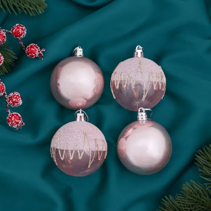Ёлочные игрушки «Фейерверк», шары новогодние, d=5.5 см, набор 4 шт., розовый — Характеристики