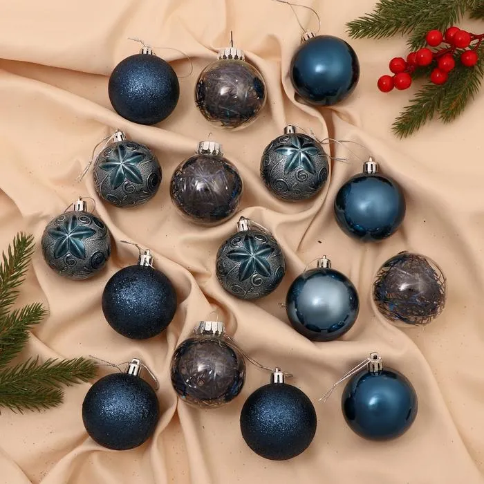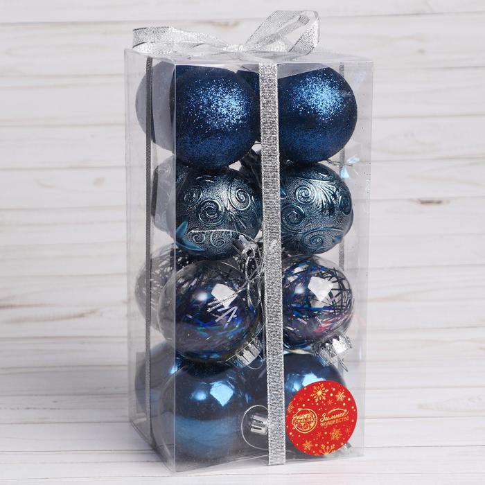 Ёлочные игрушки «Фестиваль узоры», шары новогодние, d=6 см, набор 16 шт., синий — Характеристики
