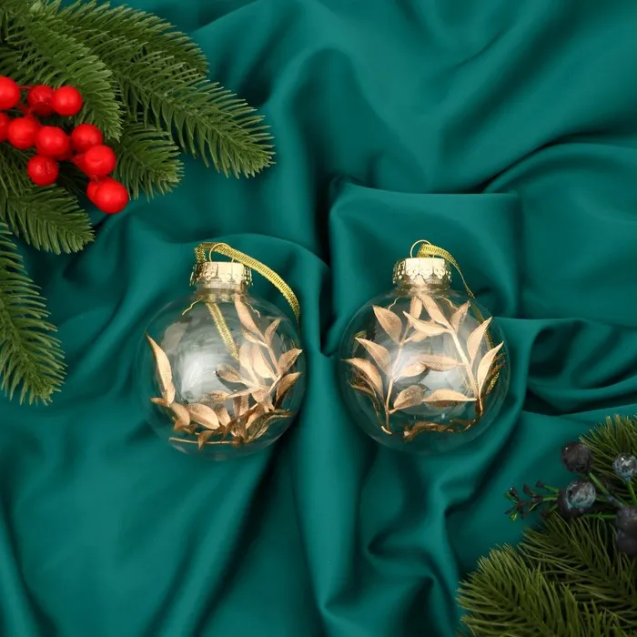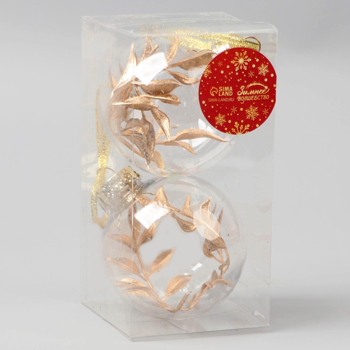 Ёлочные игрушки «Фиеста», шары новогодние, d=8 см, набор 2 шт., веточка, золото — Характеристики