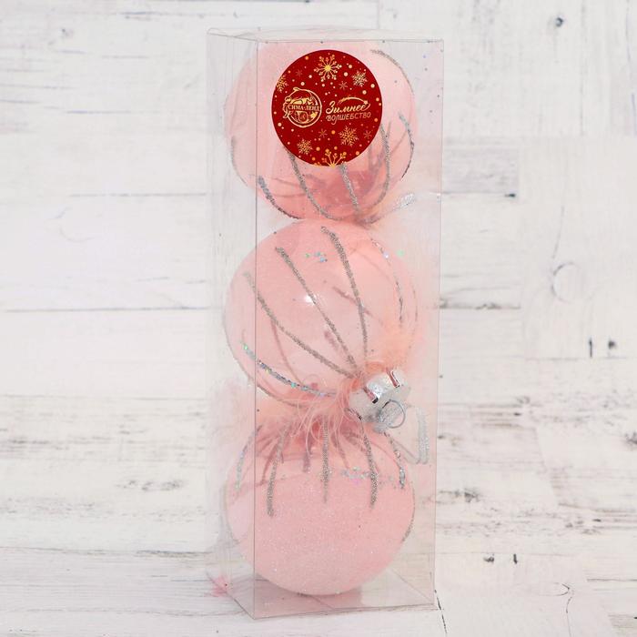 Новогодние шары розового цвета с декоративным рисунком — это мягкий, но заметный акцент для праздничной ёлки в стиле шебби-шик. Три пластиковые игрушки диаметром 8 см станут изысканным элементом декора и добавят интерьеру нотку зимней сказки без лишней вычурности.