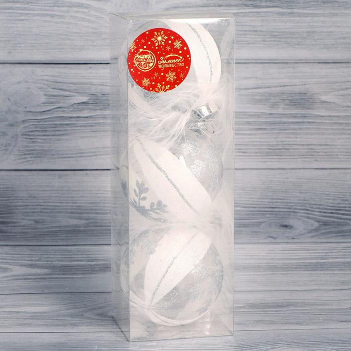 Ёлочные игрушки «Галатея снежинка», шары новогодние, d=8 см, 3 шт., серебристо-белый — Характеристики