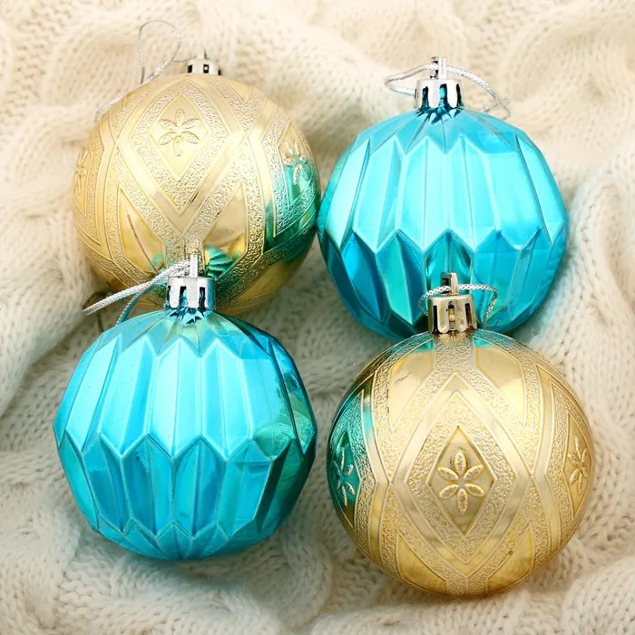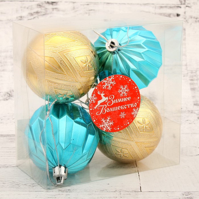 Ёлочные игрушки «Геометрия цветов», шары новогодние, d=6 см, набор 4 шт., золотисто-голубой — Характеристики