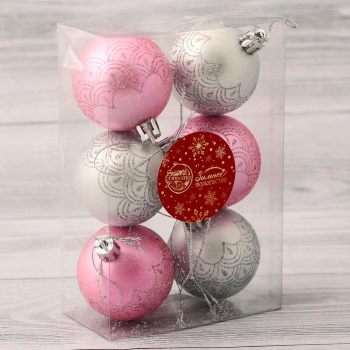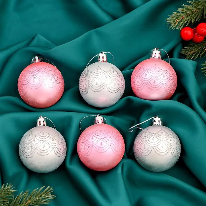 Ёлочные игрушки «Глэдис», шары новогодние, d=5 см, набор 6 шт., серебристо-розовый — Характеристики