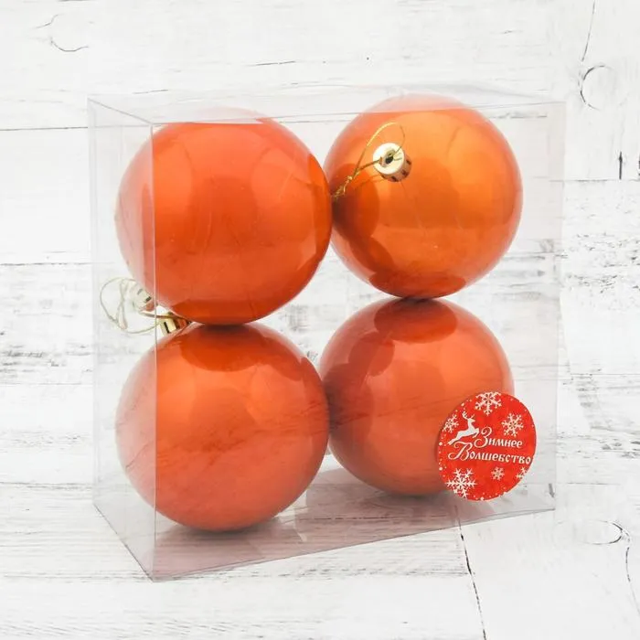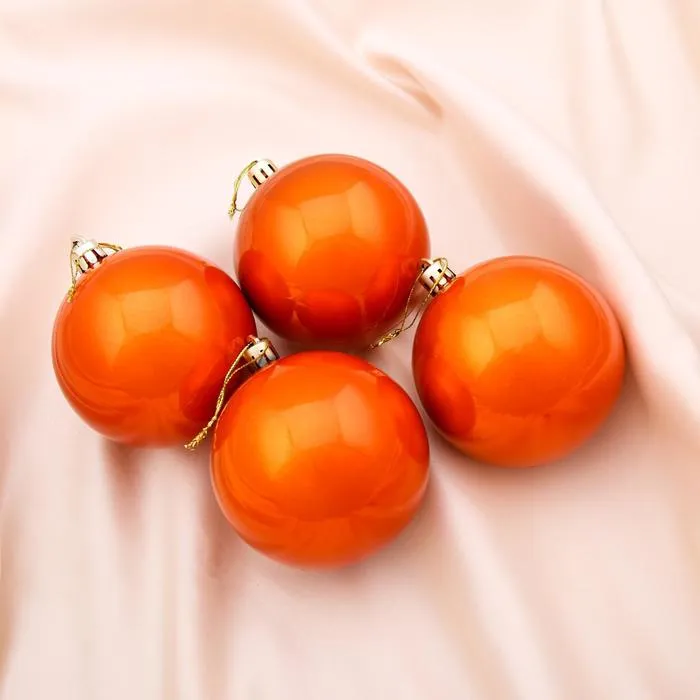 Наполните новогоднее убранство мандариновым настроением! Ёлочные игрушки «Глянец», пластиковые, набор 4 шт., d=8 см, оранжевый — яркое дополнение к наряду праздничной ёлки.